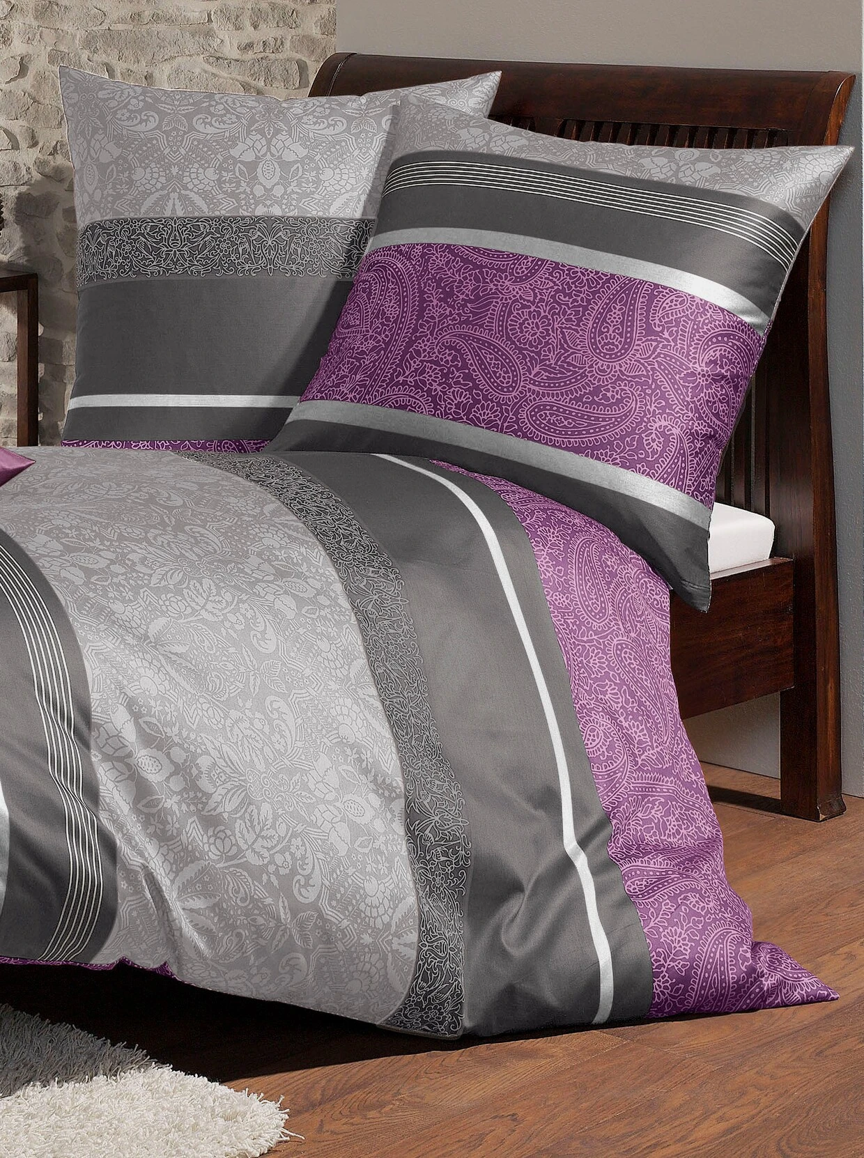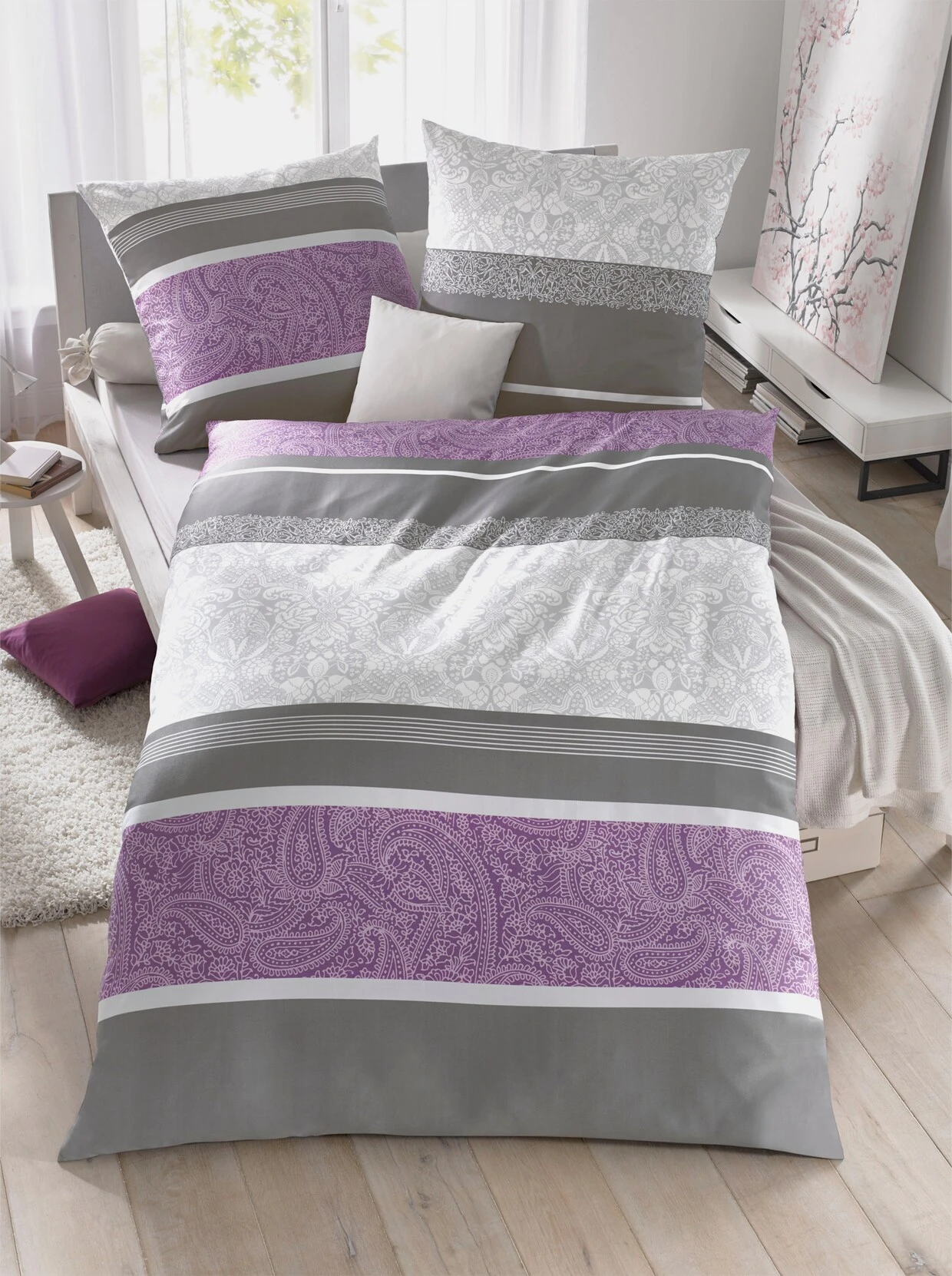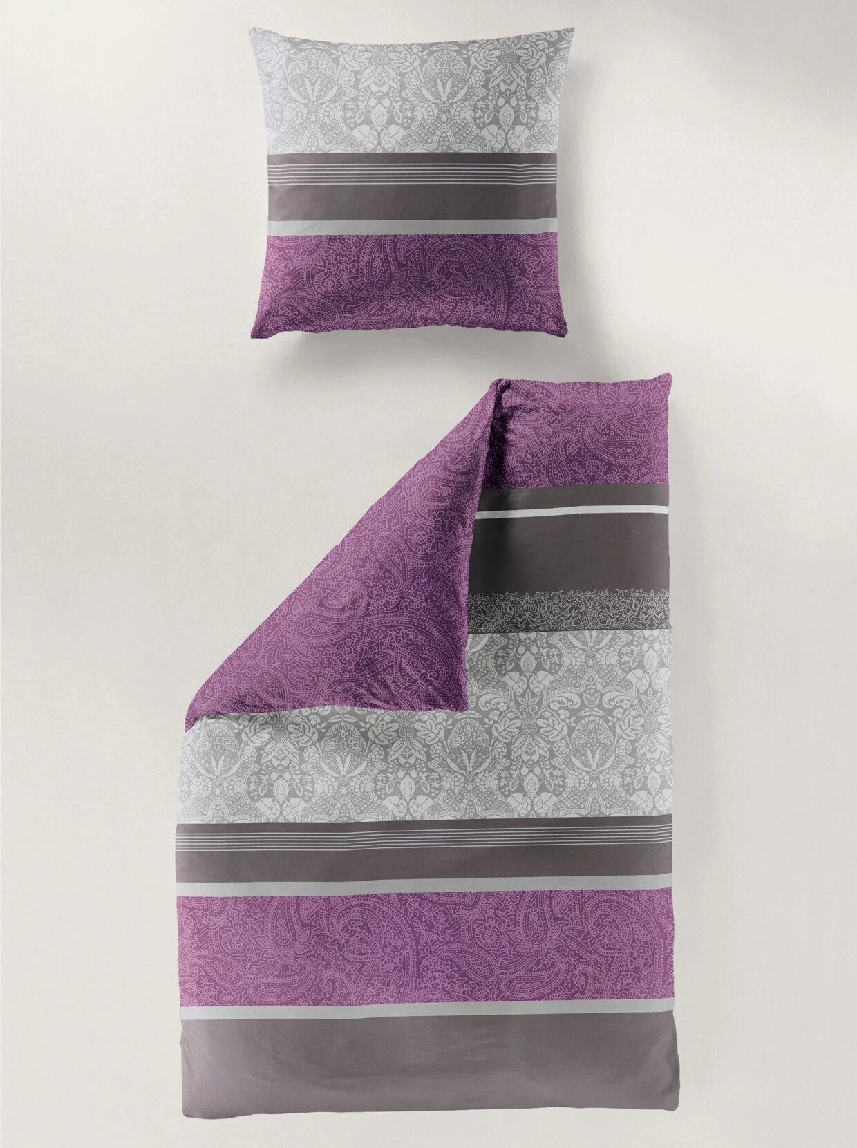 Im attraktiven Dessin-Mix mit Paisleys und Streifen: Bettwäsche in angenehmer Qualität. Mit praktischem Reißverschluss.Artikelnummer: 262.624.031Marke: BierbaumFarbe: beere-gestreiftVerschluss: ReißverschlussGarantie: 5 JahreMaterial: 100% BaumwolleStoffart: Mako-SatinPackungsgröße: 2-teilige GarniturZusatzinformation: Kissen- und BettbezugPflegehinweis: Maschinenwäsche bis 60 °CMaße Kissenbezüge: L 80 x B 80 cmMaße Bettbezug: L 200 x B 135 cm