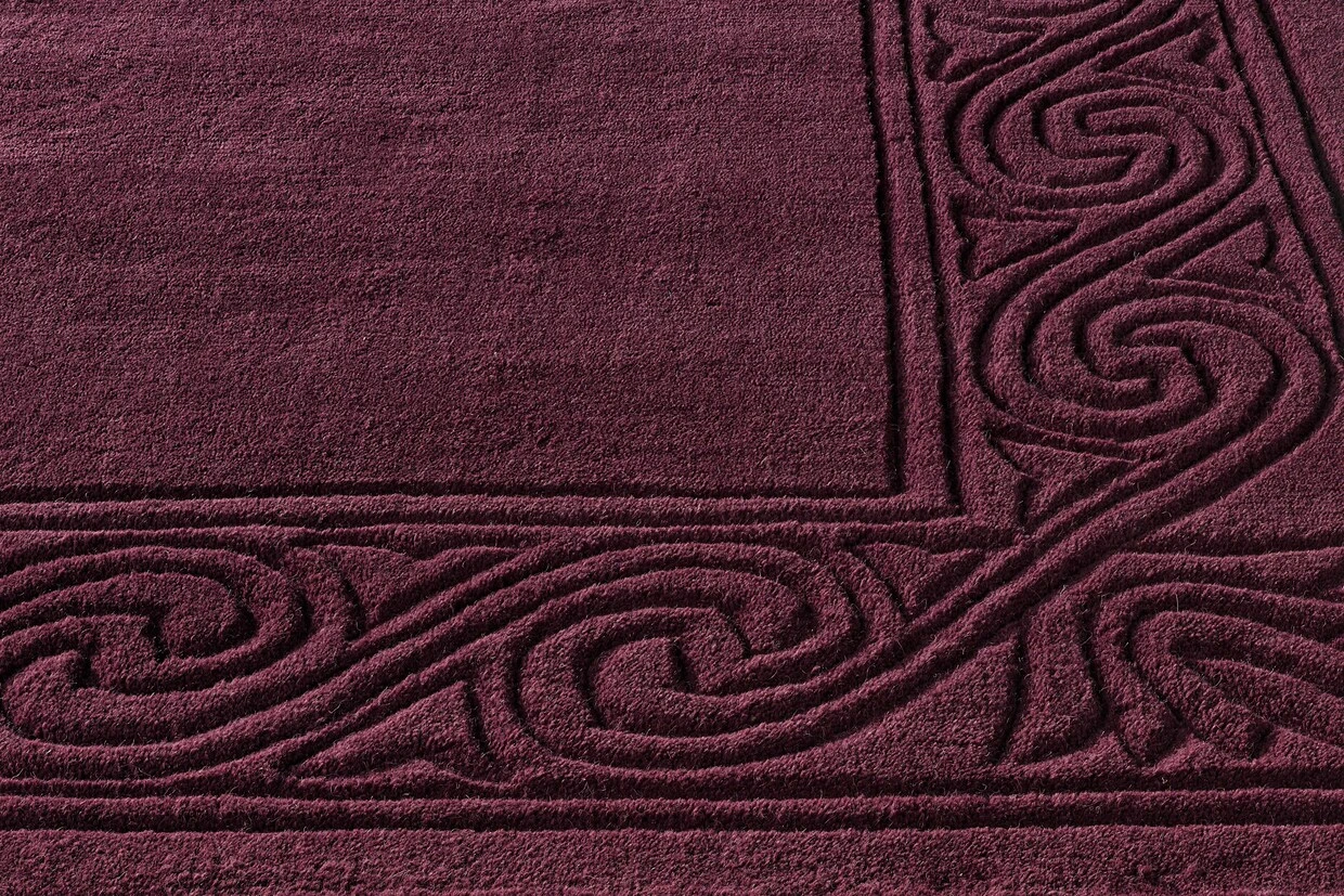 Hochflorteppich Mit aufwendiger Relief-Bordüre, von Hand geschnitten. Handgewebt.Artikelnummer: 539.148.007Nachhaltigkeit: Good WeaveMarke: heine homeFarbe: aubergineMaterial: 100% WolleFlorhöhe in mm: 20Pflegehinweis: Nicht waschbarMaße