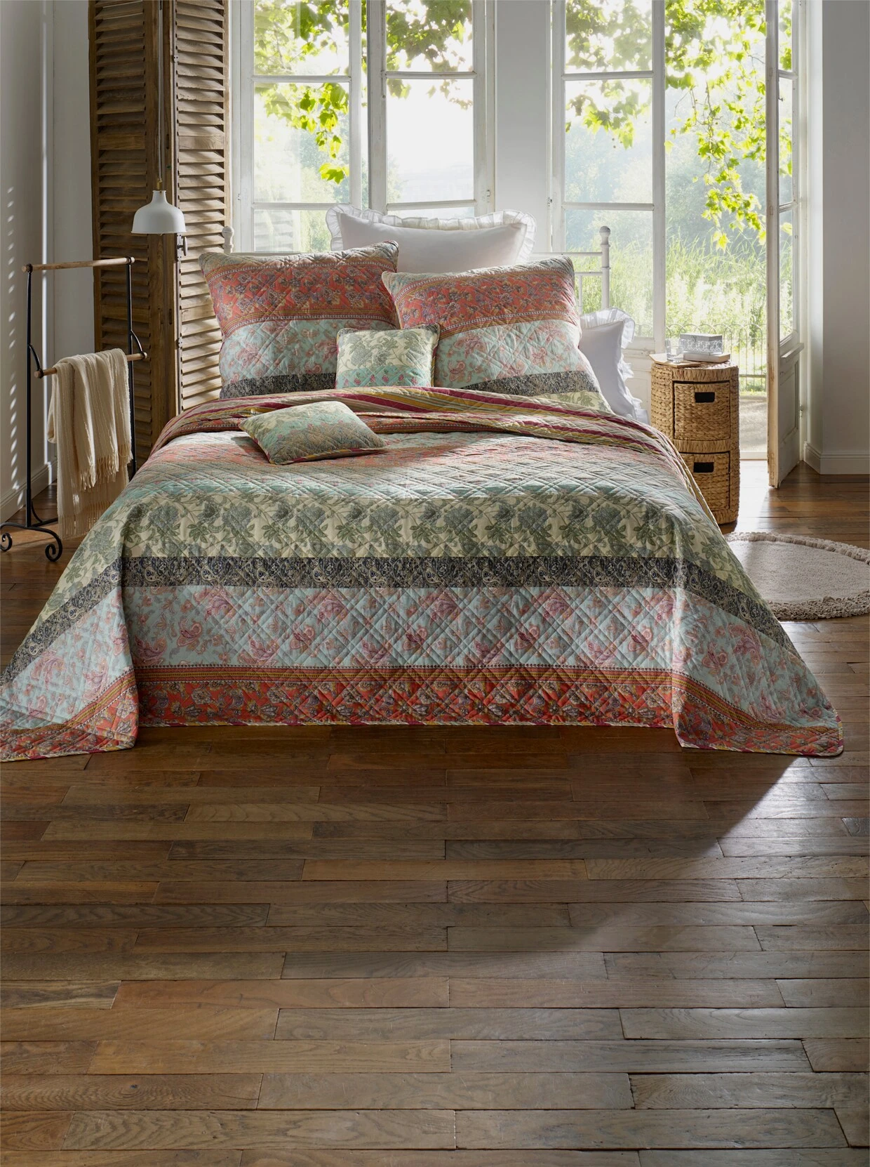 Tagesdecke Aus echtem Patchwork. Von Hand gefertigt. Leicht wattiert, mit Einfassband. Passende Kissenhülle mit Reißverschluss. Maßinfos im Internet.Artikelnummer: 108.039.012Marke: heine homeFarbe: buntMaterial: 100% Baumwolle. Füllung: 100% PolyesterPflegehinweis: Maschinenwäsche bis 30 °CMaße
