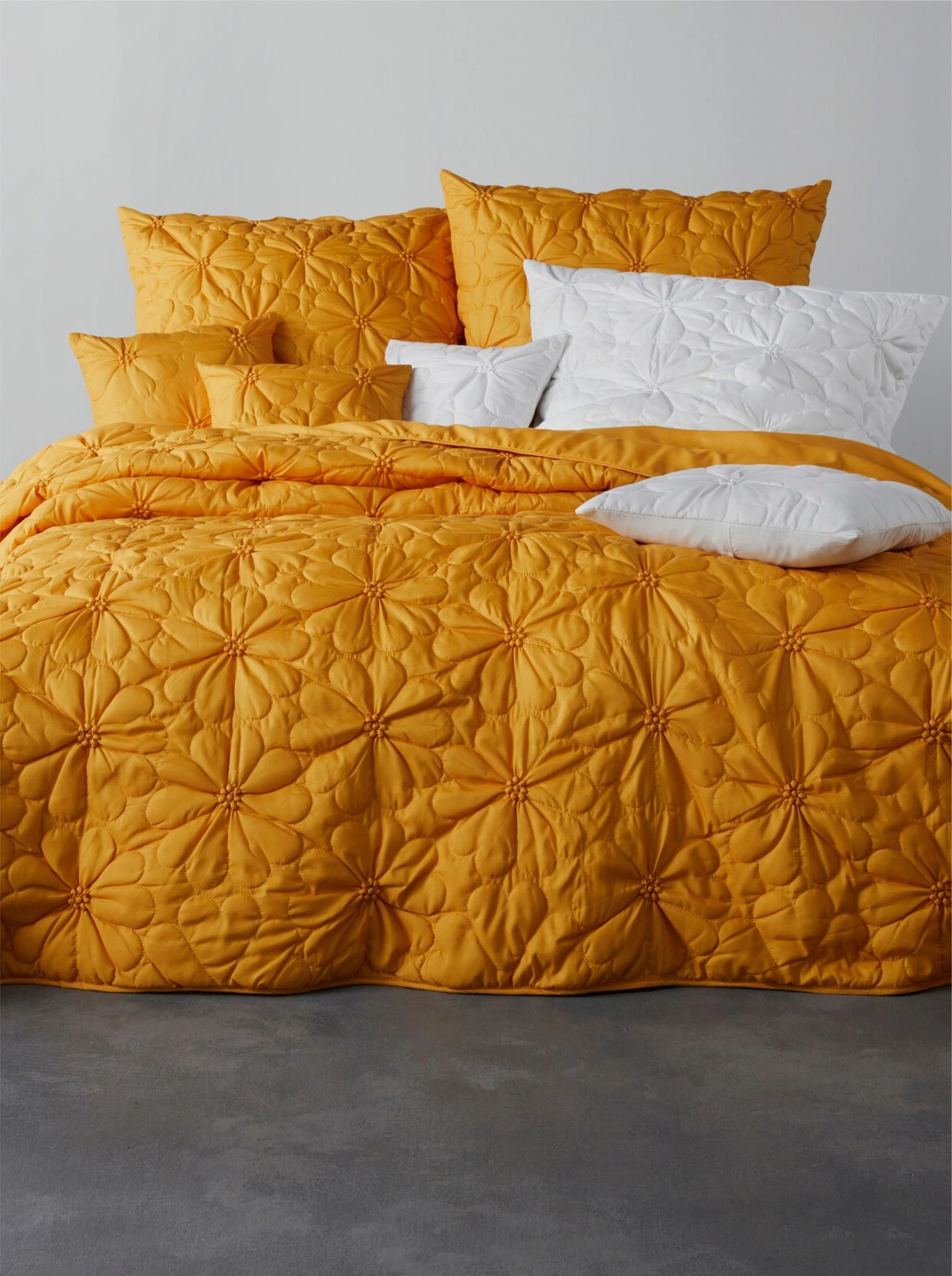 Tagesdecke 3-D-Effekt durch aufwendige Steppung. Kissenhüllen mit Reißverschluss. Maßinfos im Internet.Artikelnummer: 765.404.002Marke: heine homeFarbe: gelbMaterial: 100% PolyesterPflegehinweis: Maschinenwäsche bis 40 °CMaße