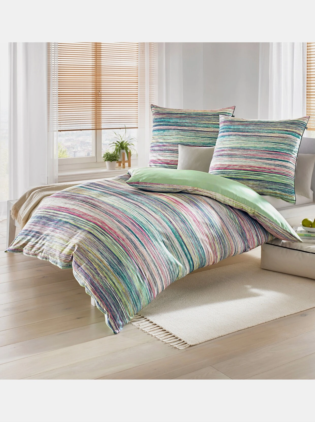 Einfarbig oder kunterbunt: Bei dieser Bettwäsche von Irisette haben Sie zwei unterschiedliche Seiten. Sie können sie ganz nach Lust und Laune drehen und wenden. Mit praktischem Reißverschluss.Artikelnummer: 345.051.005Marke: IrisetteFarbe: grün-gestreiftGarantie: 10 JahreVerschluss: ReißverschlussMaterial: 100% BaumwolleStoffart: Mako-SatinPackungsgröße: 2-teilige GarniturZusatzinformation: Kissen- und BettbezugPflegehinweis: Maschinenwäsche bis 60 °CMaße Kissenbezüge: L 80 x B 80 cmMaße Bettbezug: L 200 x B 135 cm