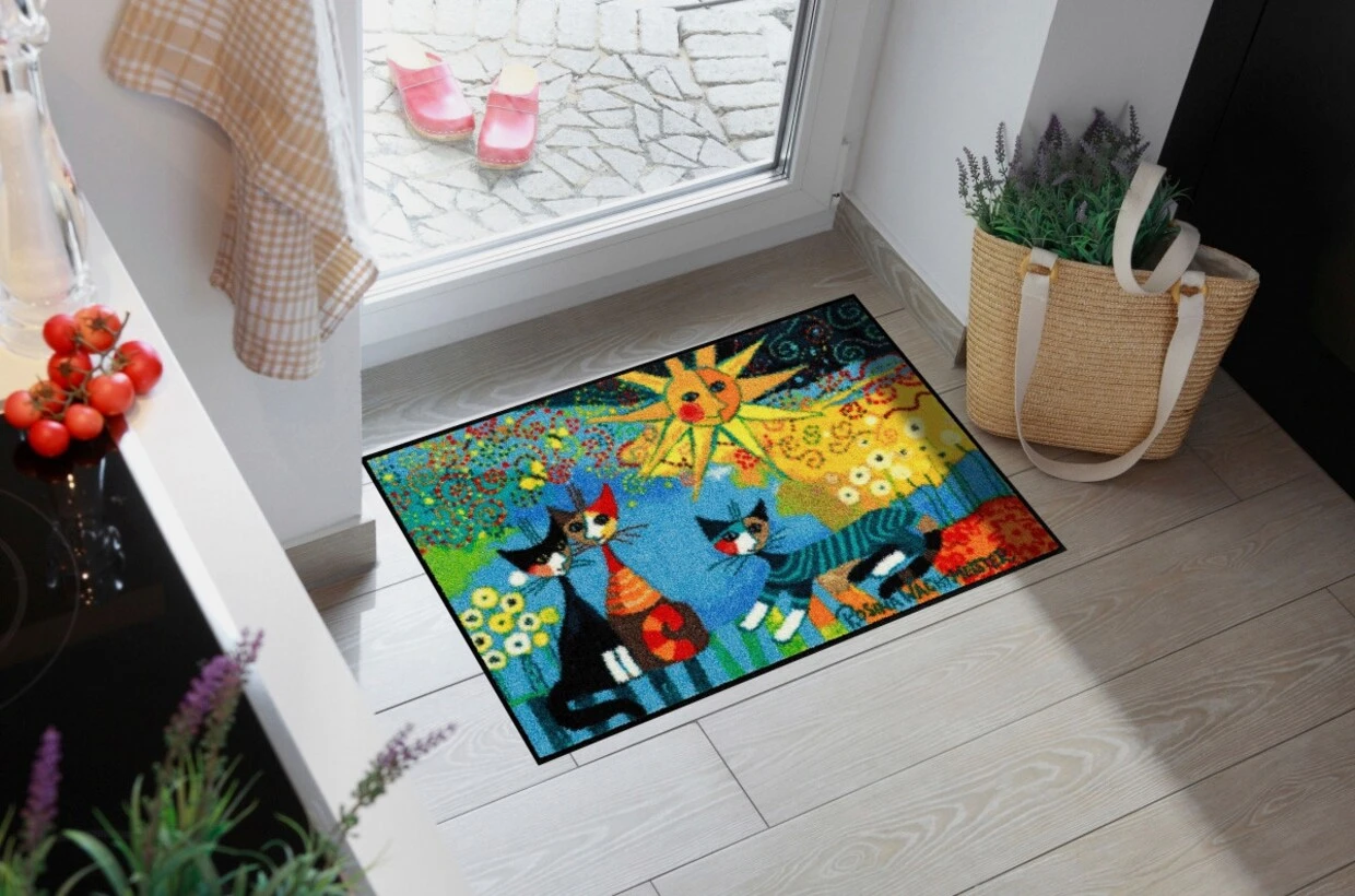 Fußmatte Made in Germany. Strapazierfähige, UV-beständige Qualität für den Innen- und überdachten Außenbereich. Rückseite rutschhemmend beschichtet. PVC-frei. Für Fußbodenheizung geeignet, 5 Jahre Qualitätsgarantie.Artikelnummer: 729.648.007Marke: SalonloeweFarbe: blau-gemustertGarantie: 5 JahreMaterial: 100% Polyamid. Rückseite: 100% GummiFlorhöhe in mm: 7Pflegehinweis: Maschinenwäsche bis 60 °CMaße