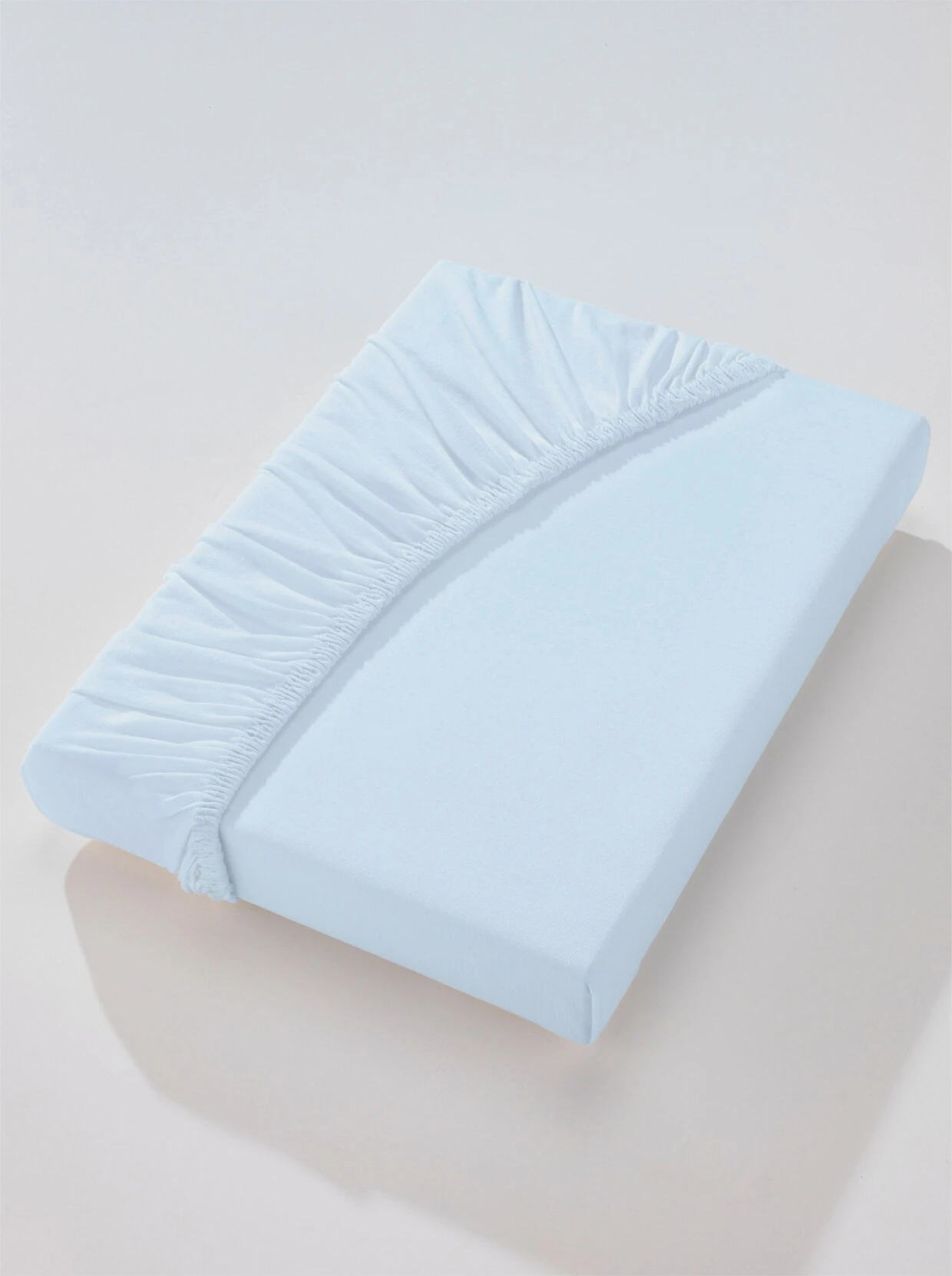 Spannbetttuch aus Elastik-Jersey: elastisch, pflegeleicht und absolut bügelfrei. Rundum-Gummizug. Geeignet für eine Matratzenhöhe von bis zu 25 cm.Artikelnummer: 129.431.004Marke: wäschepurFarbe: hellblauGarantie: 10 JahreMaterial: 97% Baumwolle, 3% ElasthanPackungsgröße: 1-Stück-PackungStoffart: Single-JerseyPflegehinweis: Schonwäsche bis 60 °CArt/Form: Spannbetttuch mit rundum GummizugMaße