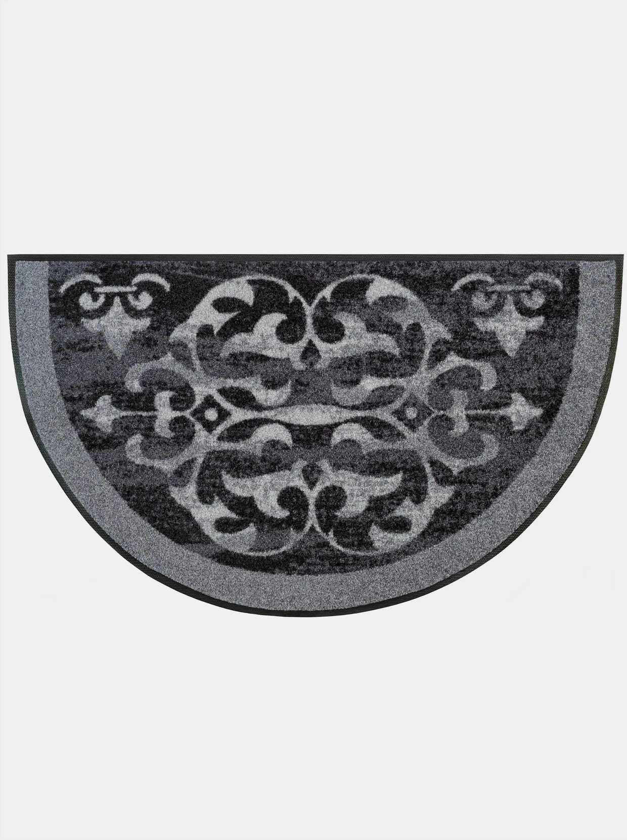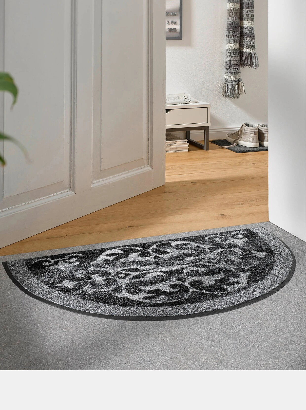 Fußmatte Mit edlen Ornamenten. Äußerst strapazierfähig und pflegeleicht. Für den Innen- und überdachten Außenbereich. Rückseite rutschhemmend gummiert. PVC-frei. Für Fußbodenheizung geeignet, 5 Jahre Qualitätsgarantie.Artikelnummer: 549.129.002Besonderheit: Waschbar, RutschhemmendMarke: wash&dryFarbe: anthrazit-grauGarantie: 5 JahreMaterial: 100% Polyamid. Rückseite: 100% GummiBeschichtung: rutschhemmende RückseiteFlorhöhe in mm: 7Pflegehinweis: Maschinenwäsche bis 60 °CMaße