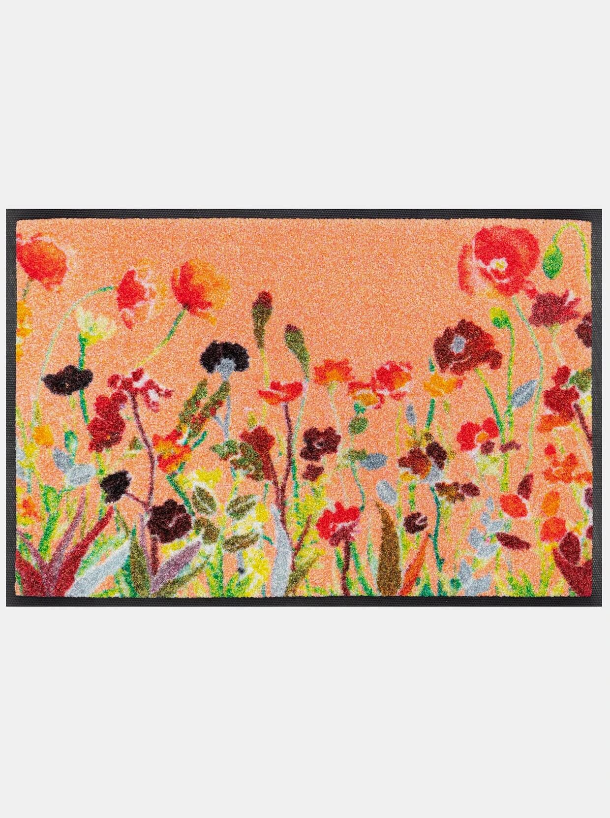 Fußmatte Mit farbenfrohem Wildblumen-Motiv. Äußerst strapazierfähig und pflegeleicht. Für den Innen- und überdachten Außenbereich. Rückseite rutschhemmend gummiert. PVC-frei. Für Fußbodenheizung geeignet, 5 Jahre Qualitätsgarantie.Artikelnummer: 550.088.002Besonderheit: Waschbar, RutschhemmendMarke: wash&dryFarbe: apricot-gemustertGarantie: 5 JahreMaterial: 100% Polyamid. Rückseite: 100% GummiBeschichtung: rutschhemmende RückseiteFlorhöhe in mm: 7Pflegehinweis: Maschinenwäsche bis 60 °CMaße