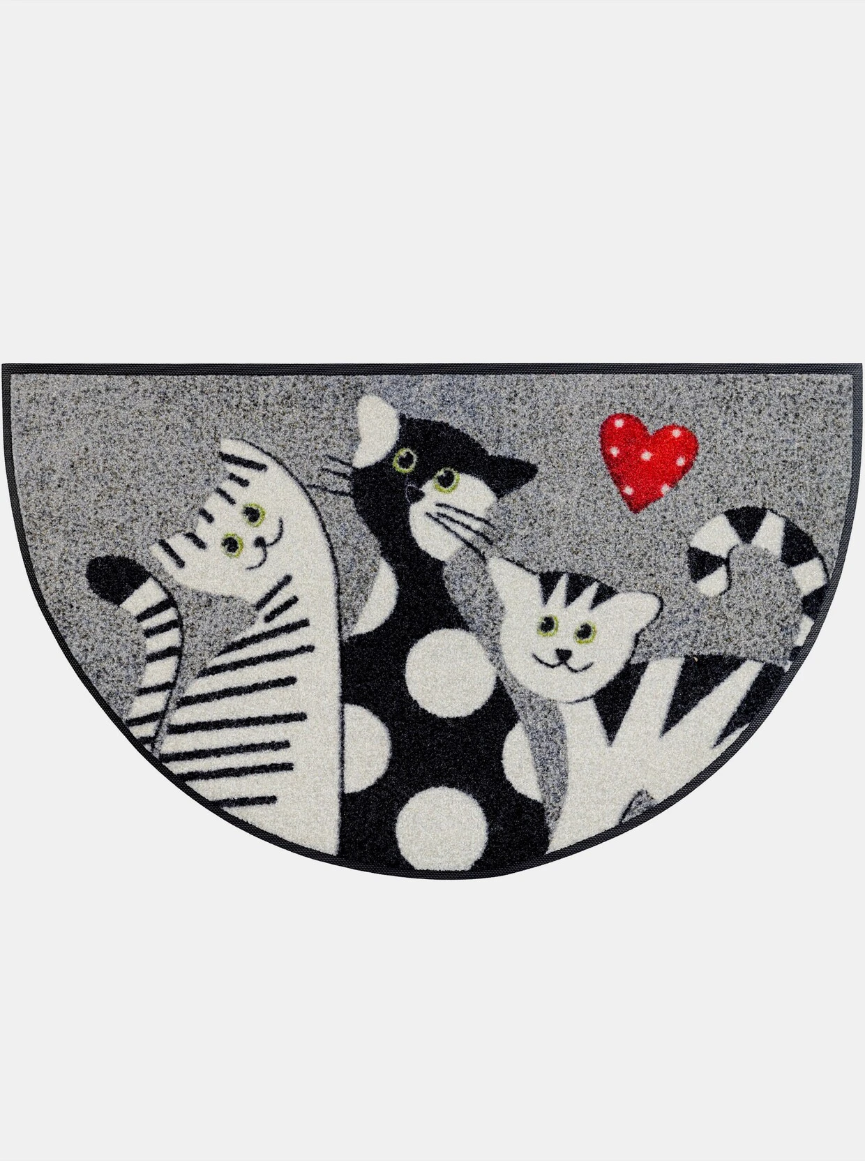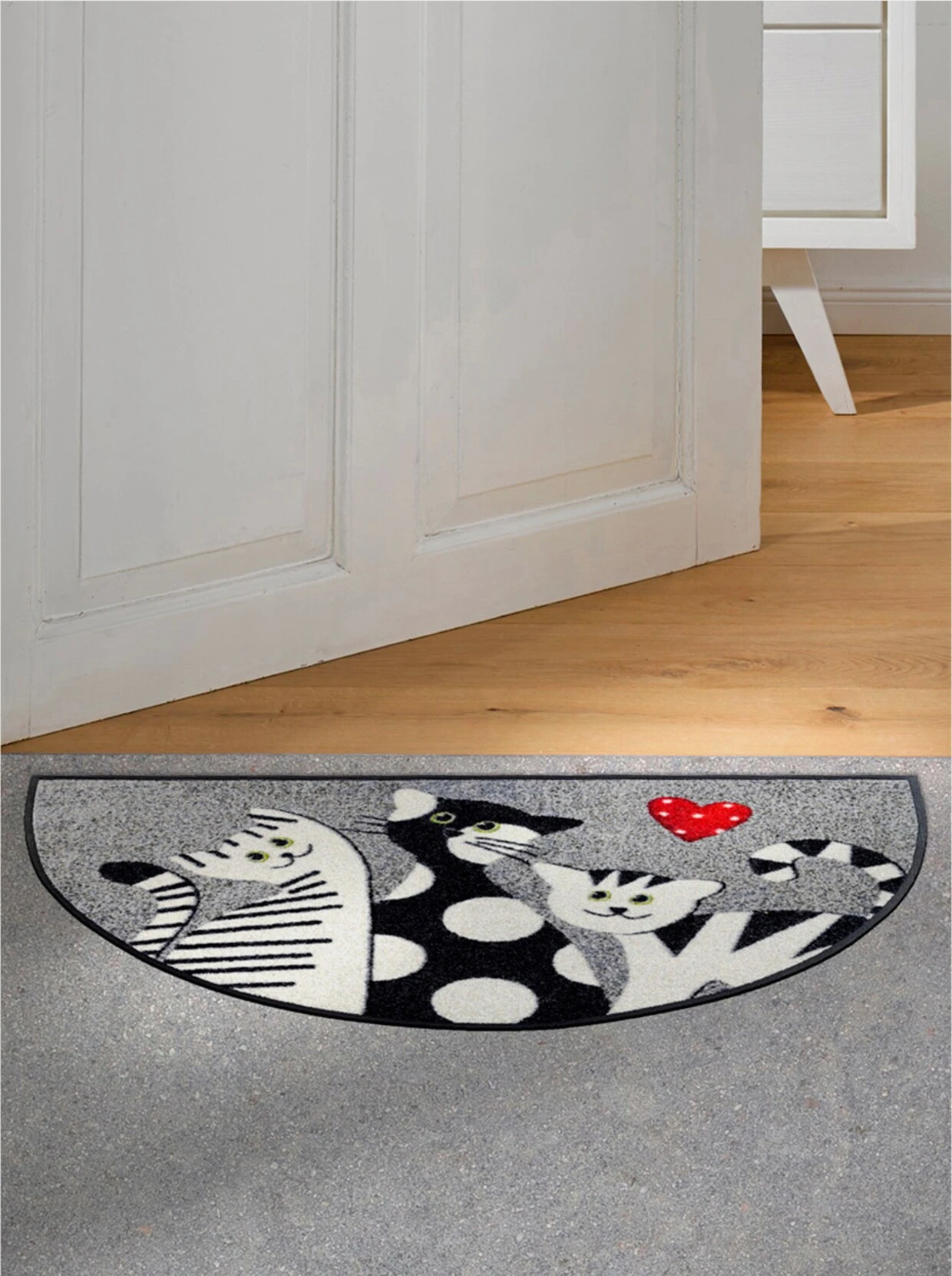 Fußmatte Mit originellem Katzen-Motiv. Äußerst strapazierfähig und pflegeleicht. Für den Innen- und überdachten Außenbereich. Rückseite rutschhemmend gummiert. PVC-frei. Für Fußbodenheizung geeignet, 5 Jahre Qualitätsgarantie.Artikelnummer: 550.242.002Besonderheit: Waschbar, RutschhemmendMarke: wash&dryFarbe: grau-bedrucktGarantie: 5 JahreMaterial: 100% Polyamid. Rückseite: 100% GummiBeschichtung: rutschhemmende RückseiteFlorhöhe in mm: 7Pflegehinweis: Maschinenwäsche bis 60 °CMaße
