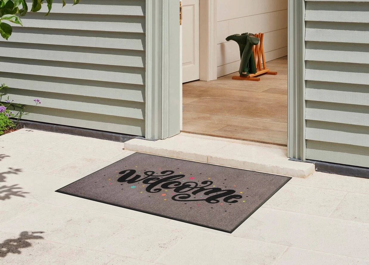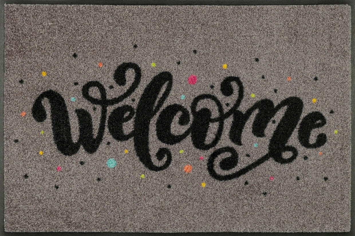 Fußmatte Mit „Welcome“-Schriftzug. Äußerst strapazierfähig und pflegeleicht. Für den Innen- und überdachten Außenbereich geeignet. Rückseite rutschhemmend beschichtet. Für Fußbodenheizung geeignet. PVC-frei. 5 Jahre Qualitätsgarantie.Artikelnummer: 409.516.005Besonderheit: Waschbar, RutschhemmendMarke: wash&dryFarbe: grau-gemustertGarantie: 5 JahreMaterial: 100% Polyamid. Rückseite: 100% GummiFlorhöhe in mm: 7Pflegehinweis: Maschinenwäsche bis 60 °CMaße