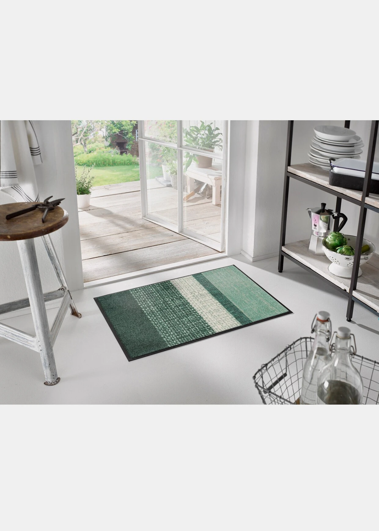 Fußmatte Sehr dekorativ in gewebter Optik. Äußerst strapazierfähig und pflegeleicht. Für den Innen- und überdachten Außenbereich. Rückseite rutschhemmend gummiert. PVC-frei. Für Fußbodenheizung geeignet, 5 Jahre Qualitätsgarantie.Artikelnummer: 645.687.002Besonderheit: Waschbar, RutschhemmendMarke: wash&dryFarbe: grün-ecruGarantie: 5 JahreMaterial: 100% Polyamid. Rückseite: 100% GummiBeschichtung: rutschhemmende RückseiteFlorhöhe in mm: 7Pflegehinweis: Maschinenwäsche bis 60 °CMaße